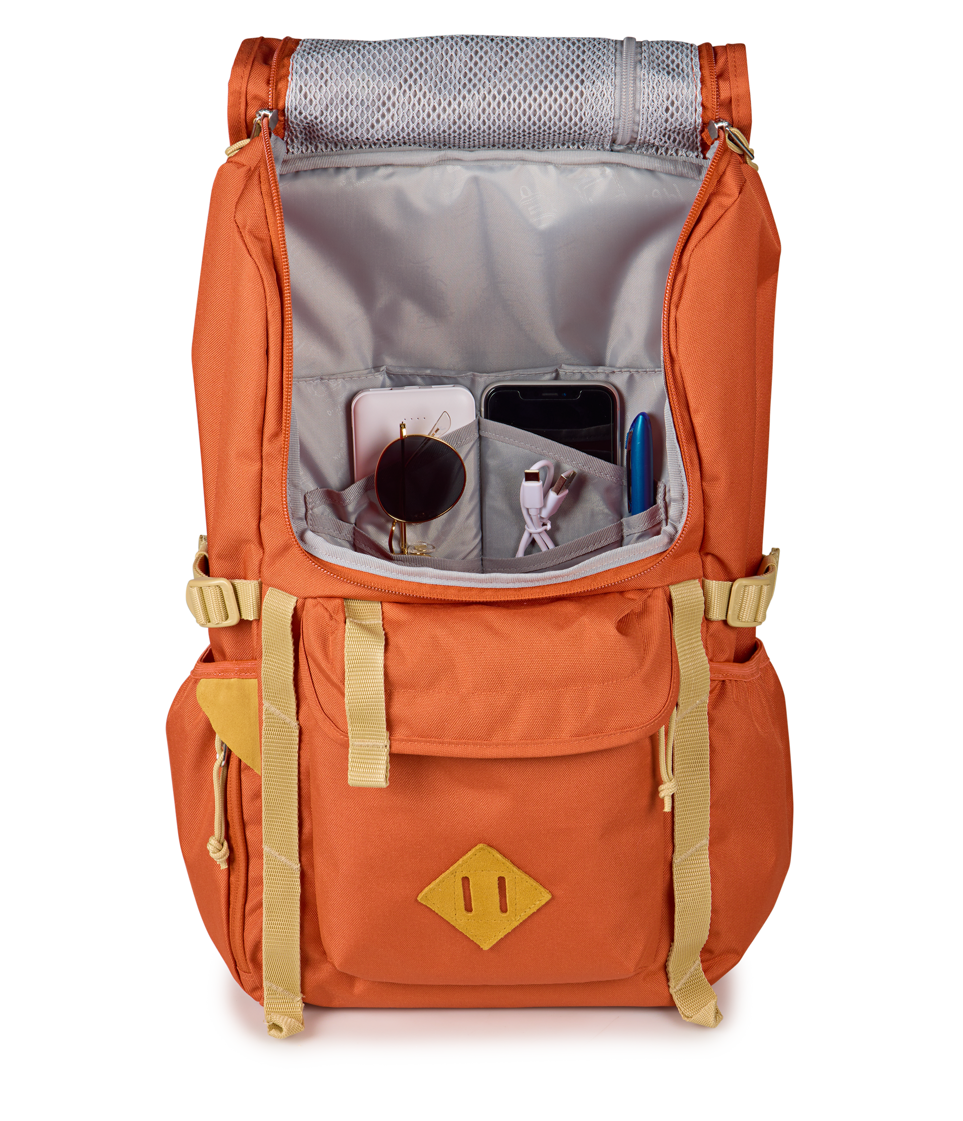 - Mesh zip pocket on inside top flap